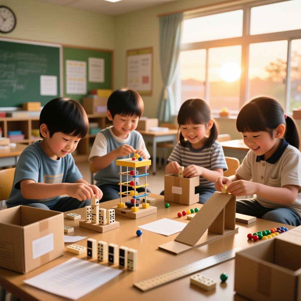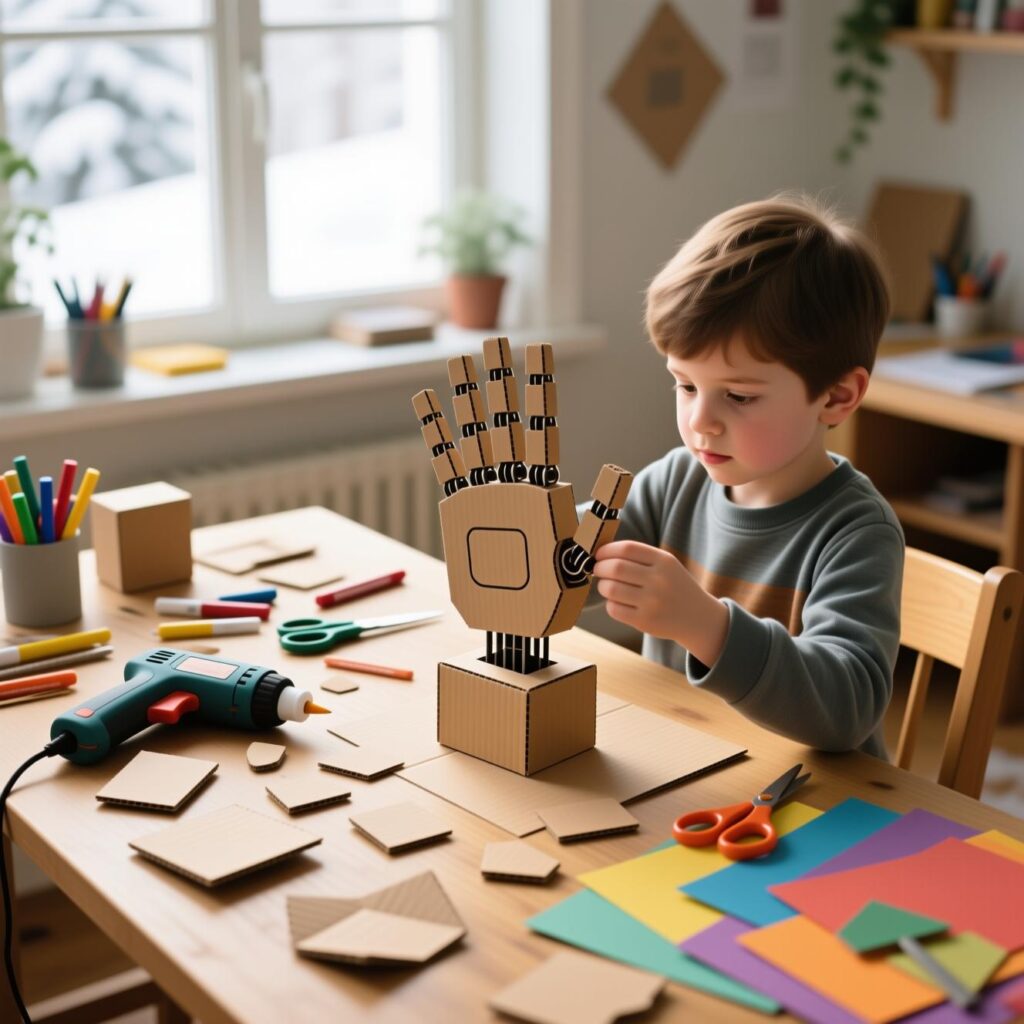 | Rube Goldberg Machine ピタゴラ装置を作りながら、 重力や連鎖反応などの物理概念に自然に触れます。 ![]() | Hand Robot ハンドロボット制作を通して、 てこの原理や力の伝え方を体験的に理解します。 ![]() |